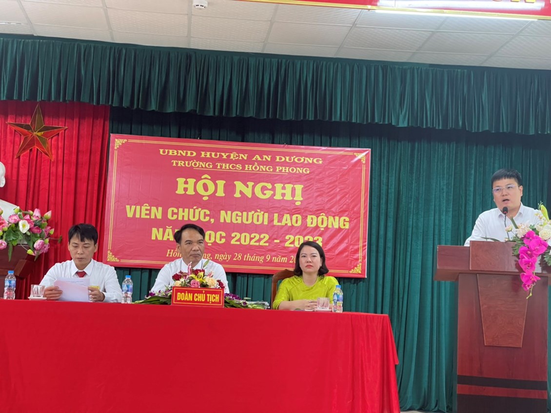 Chiều ngày 28 tháng 9 năm 2022 Trường THCS Hồng Phong tổ chức Hội nghị viên chức, người lao động năm học 2022 – 2023.